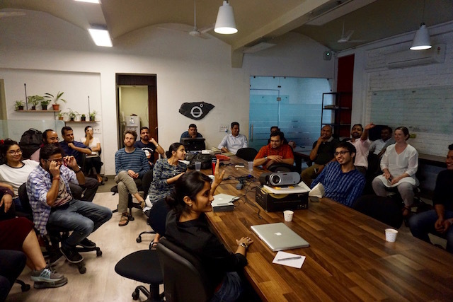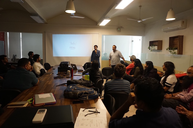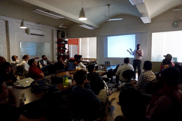 Next up was Rasagy Sharma who is a designer at Mapbox. Rasagy’s talk focussed on the subject of user research and attempted to describe the whys and hows on the topic. In addition to covering some of the simple, easy-to-adopt techniques, Rasagy answered a bunch of queries pertaining to the more involving techniques. This was Rasagy’s first attempt at using hand sketched slides for a talk and everyone loved those!