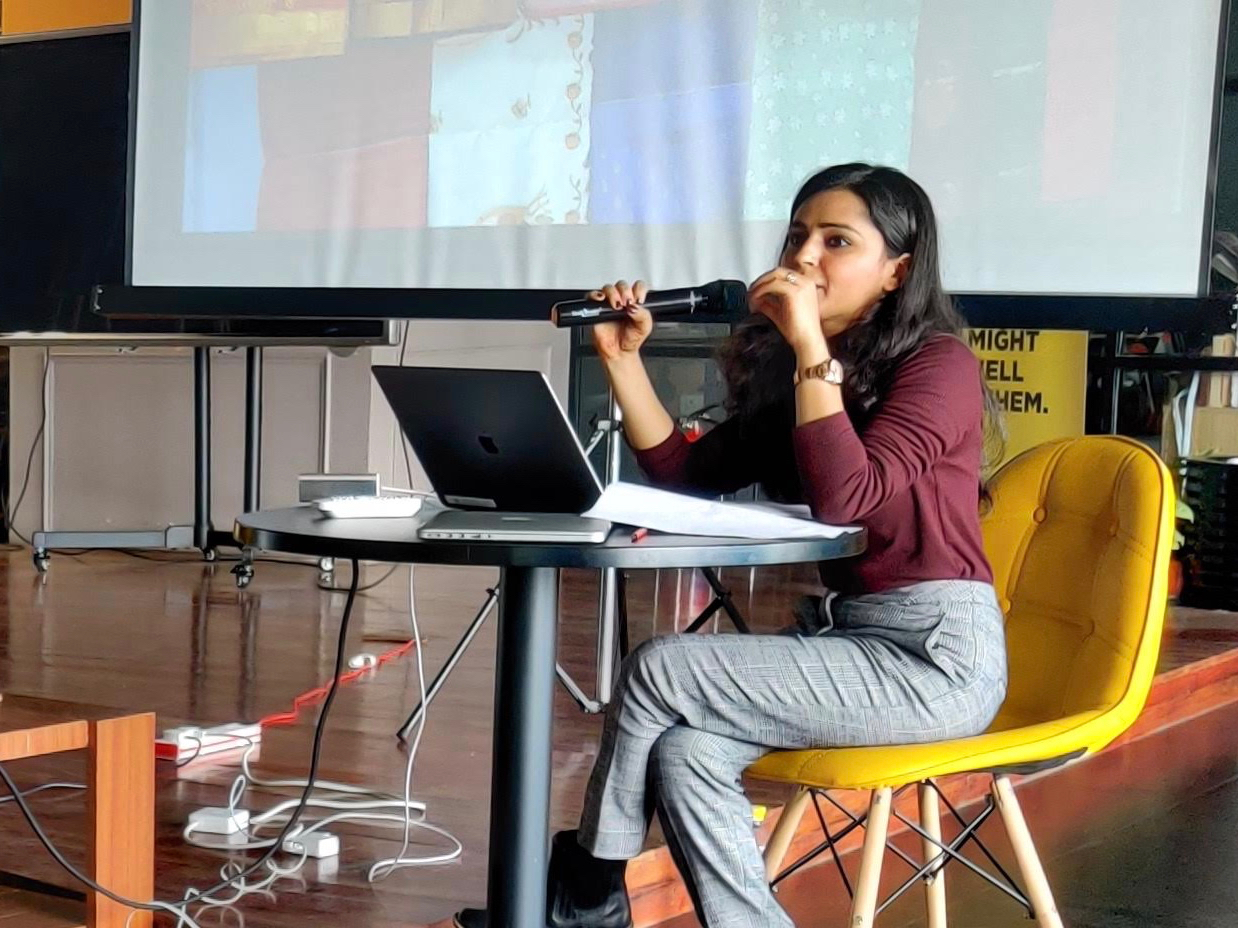 The following talk was by Richa Tiwari from Craft Revival Trust. She started off with a brief history about how various craft forms were affected by rapid industrialisation in the 1900s. She further went on to share how her organisation has been mapping the intangible cultural heritage of South Asia into an encyclopedia. (See Richa’s slides)