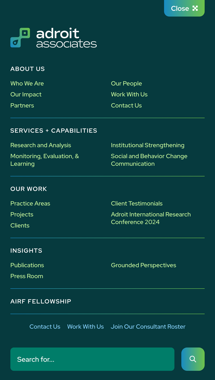 Adroit Associates provides vital consulting services in underdeveloped, fragile, and conflict-affected regions. Since 2009, they’ve executed over 120 projects across sectors in regions like Afghanistan, Ethiopia, Kazakhstan, Ukraine, Uzbekistan, Yemen, and India.