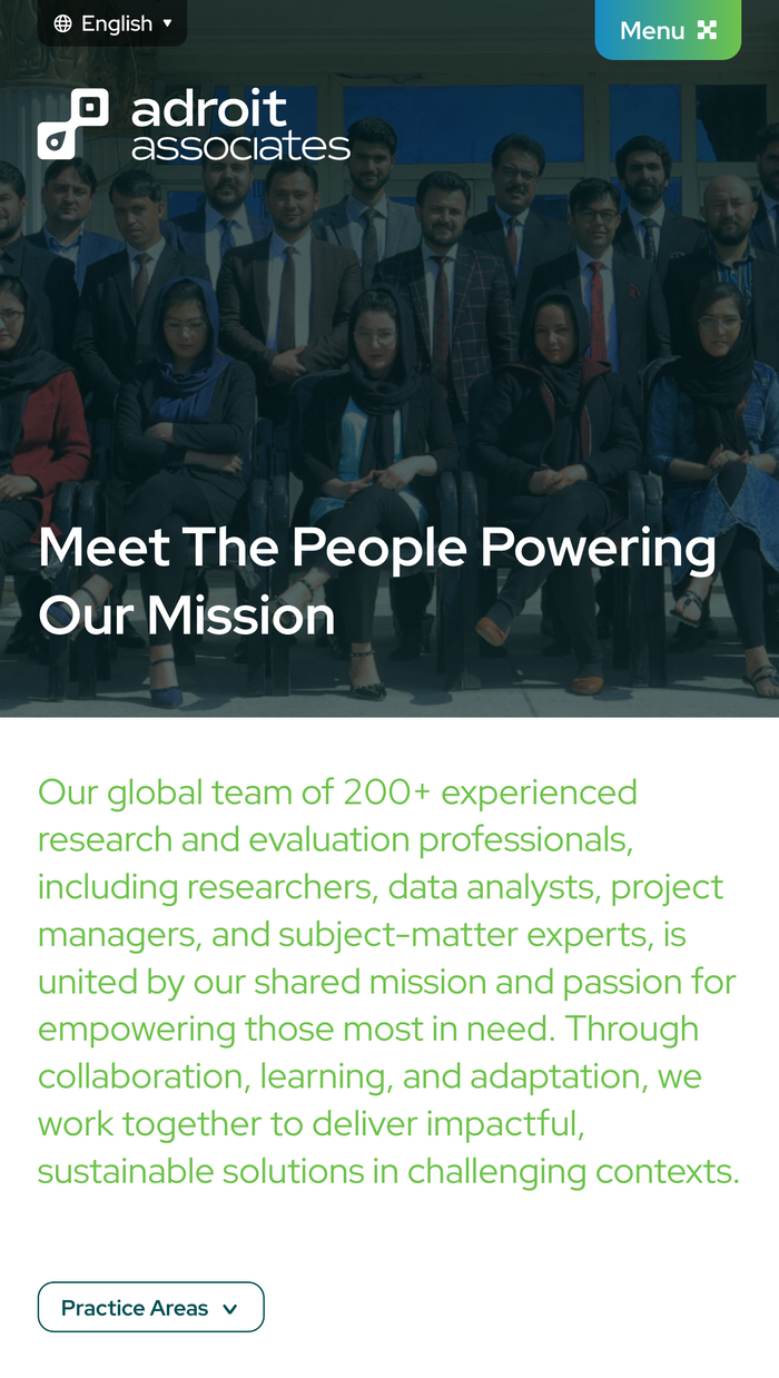Working in collaboration with Anoopa John, our team facilitated a complete brand transformation that culminated in a new name1 as well as visual identity. Our team developed a modern, responsive website that effectively communicates Adroit Associates’ mission and capabilities. Key features include: