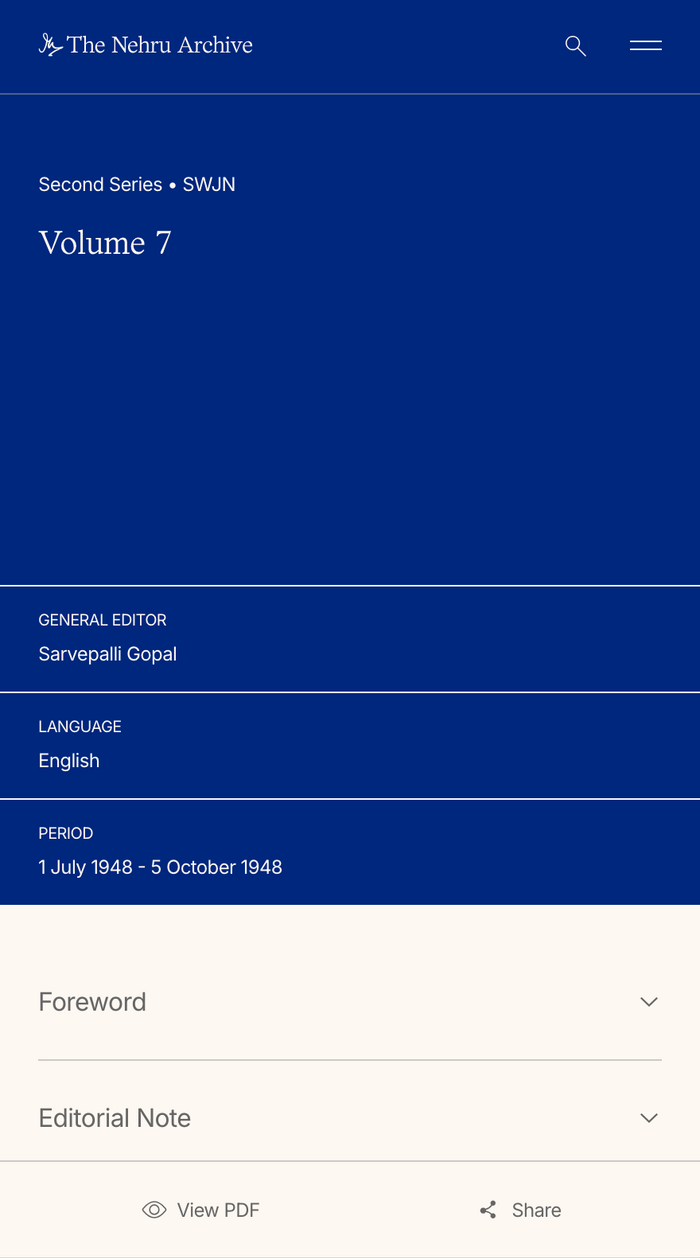 The Nehru Archive project was anchored by Oijo, who also coordinated a large team for the content upload. Now Form led the visual design. JNMF digitised the physical books into OCR-ed PDFs and offered key decisions, editorial oversight and support through the journey. For over a year, each contributor worked with clockwork precision to achieve the project target date. The project was soft-launched exactly on the promised date of 14th November 2025 and was announced to the public soon after.